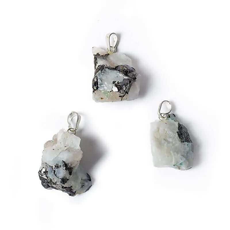 Edelsteinanhänger Weißer Mondstein (roh) mit gebohrter/geklebter Metallöse* (Messing verzinnt).