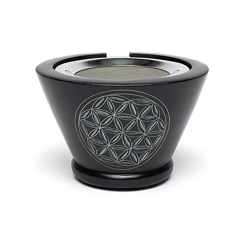 Räuchergefäß Blume des Lebens - schwarzer Speckstein
